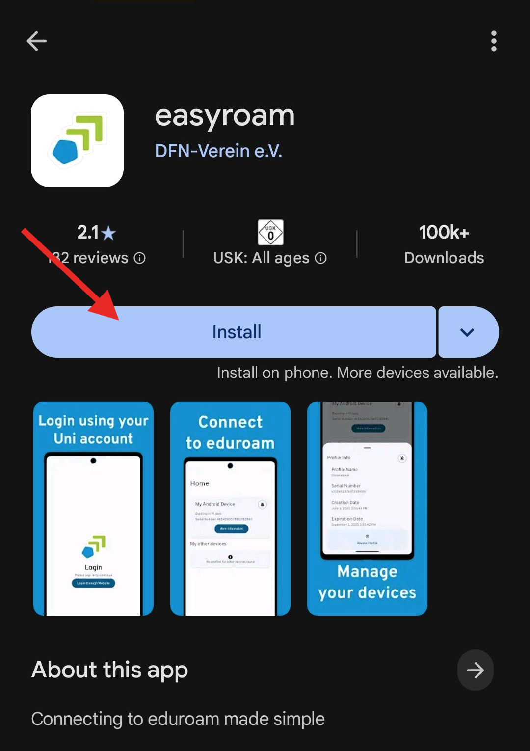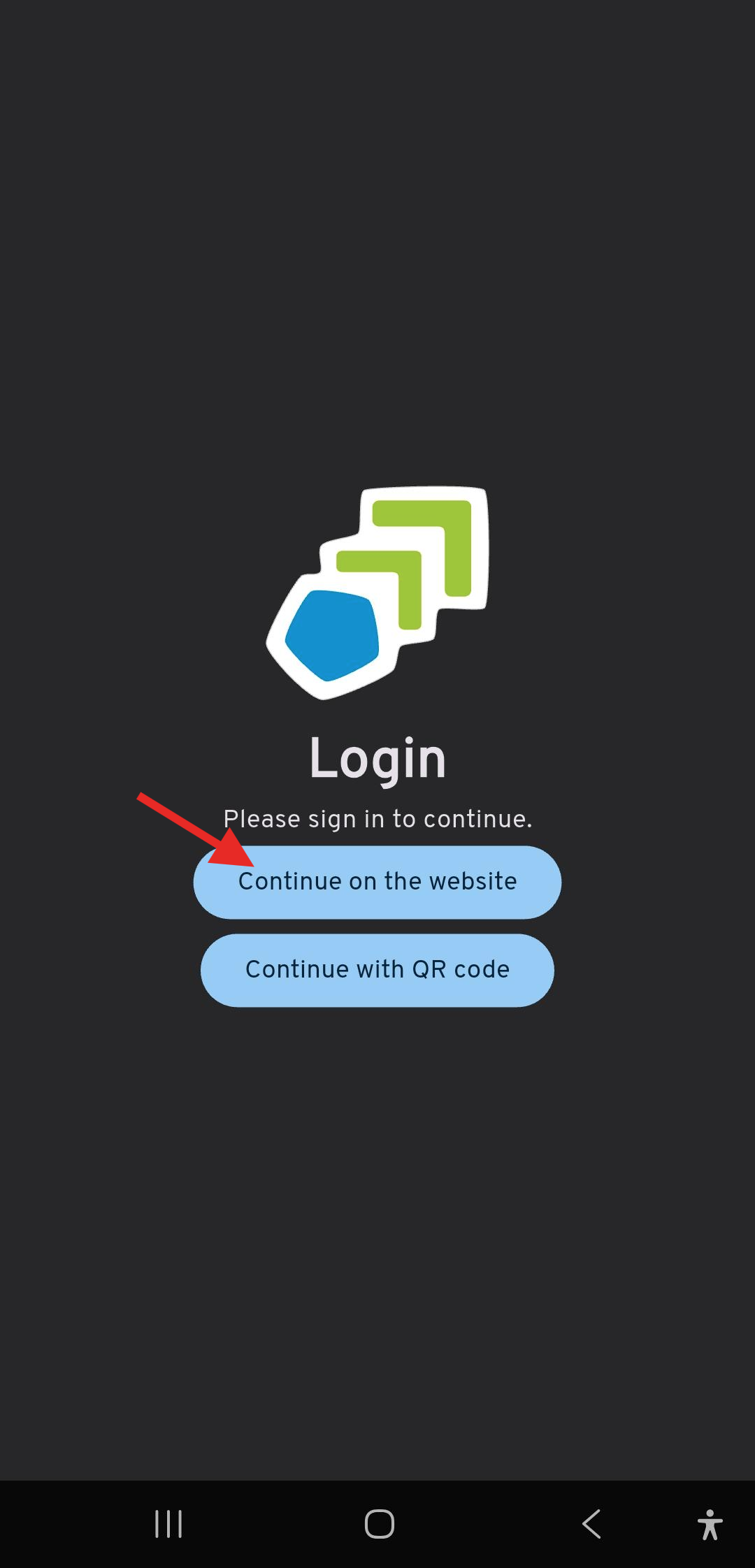 Starten Sie die App und führen Sie die Anmeldung auf der Webseite weiter.