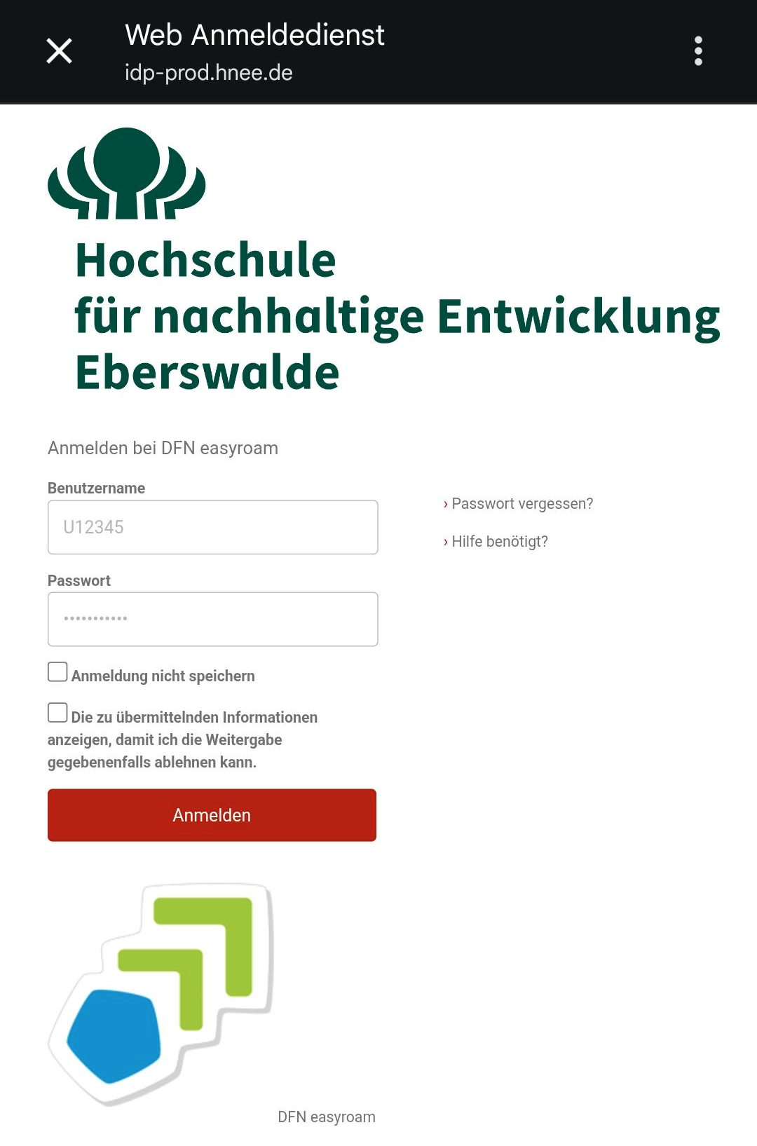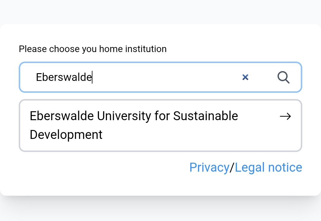 Geben Sie im Suchfeld "Eberswalde" ein und wählen sie danach die Hochschule aus.